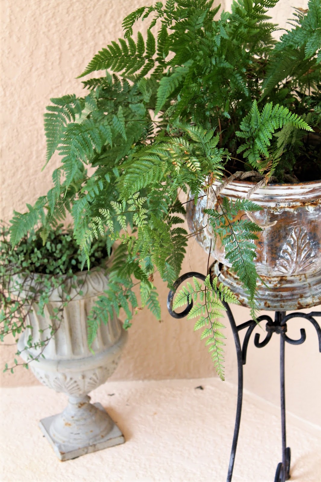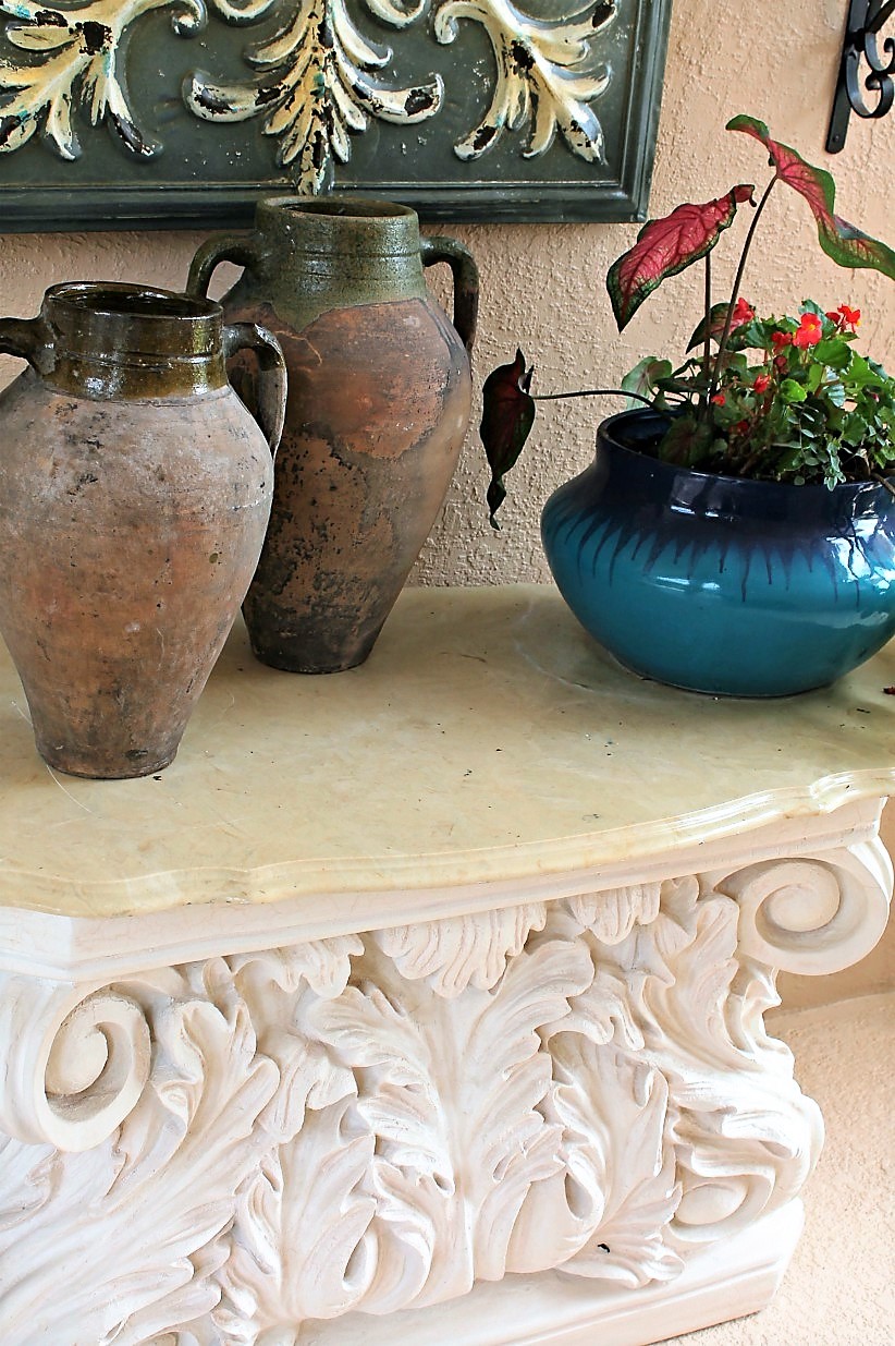 your courtyard is such a gorgeous space, Sherry. amazing the difference paint color makes, and all your lovely garden decor and furniture. Love the Lion fountain with the arched trellis behind it.
