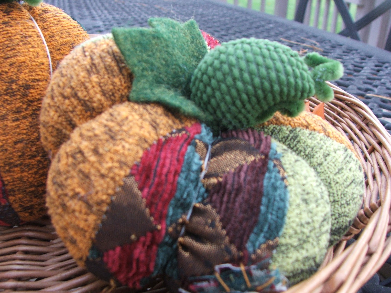 Since so many of you seem to like these I will be giving the demijohn below from my own collection to the lucky winner. Also included are the adorable patchwork pumpkin and gourd I purchased at the Fall Festival.