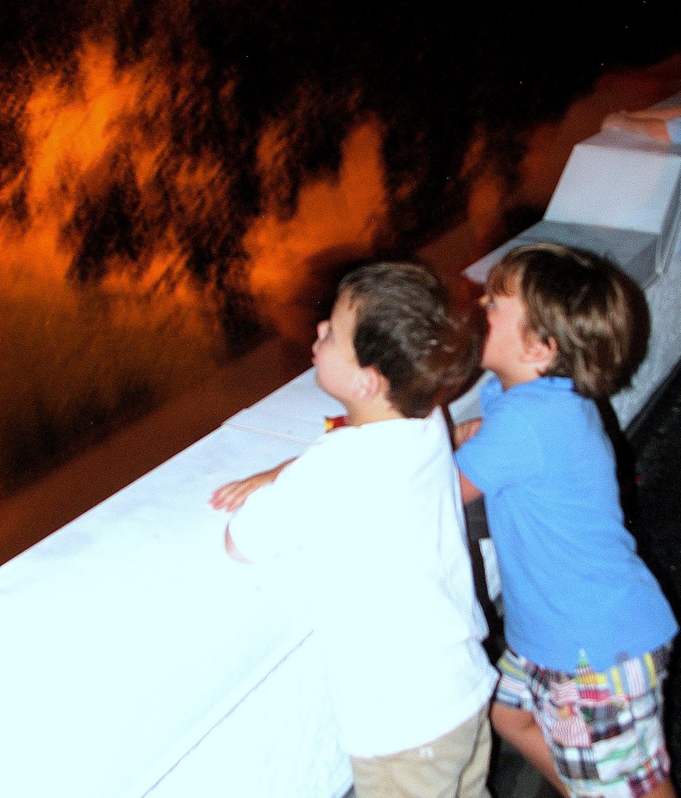 This is our grandson (white shirt) and a friend watching the show. And…….here are are the fireworks!