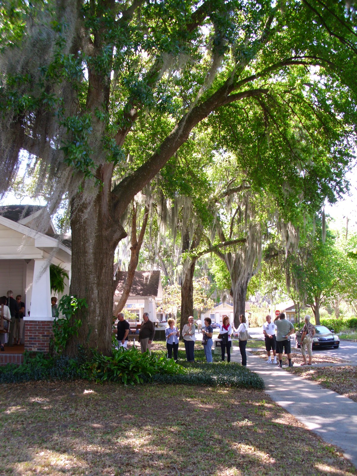 Tour in the town I grew up in. The area is walking distance to a pretty lake and many of the streets are still paved with the original brick. The entire neighborhood is shaded by giant oak trees covered with moss. Homes on the tour were built from 1912 to 1927, the styles range from Bungalow to Mediterranean.Today we will take a look at the gardens and yards. I’ll be back later with photos of the homes.